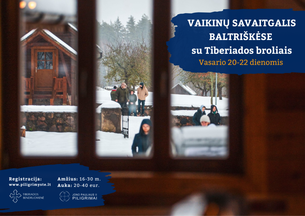 Kviečiame į jau tradiciją tapusį vaikinų savaitgalį su Tiberiados broliais Baltriškėse. Savaitgalį organizuoja Jono Pauliaus II piligrimų bendruomenė.